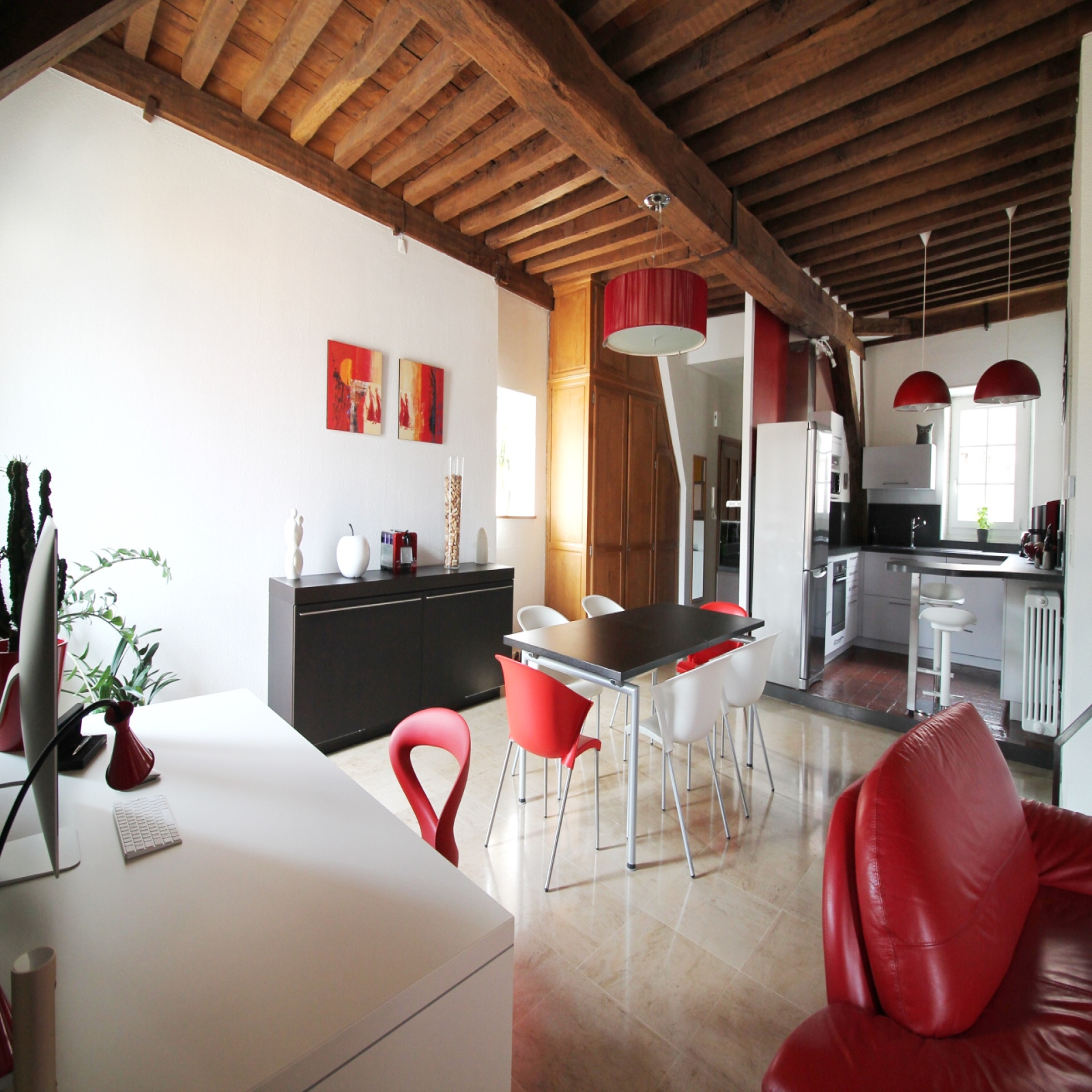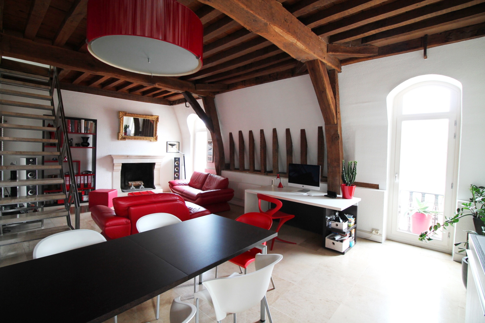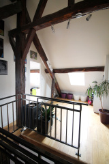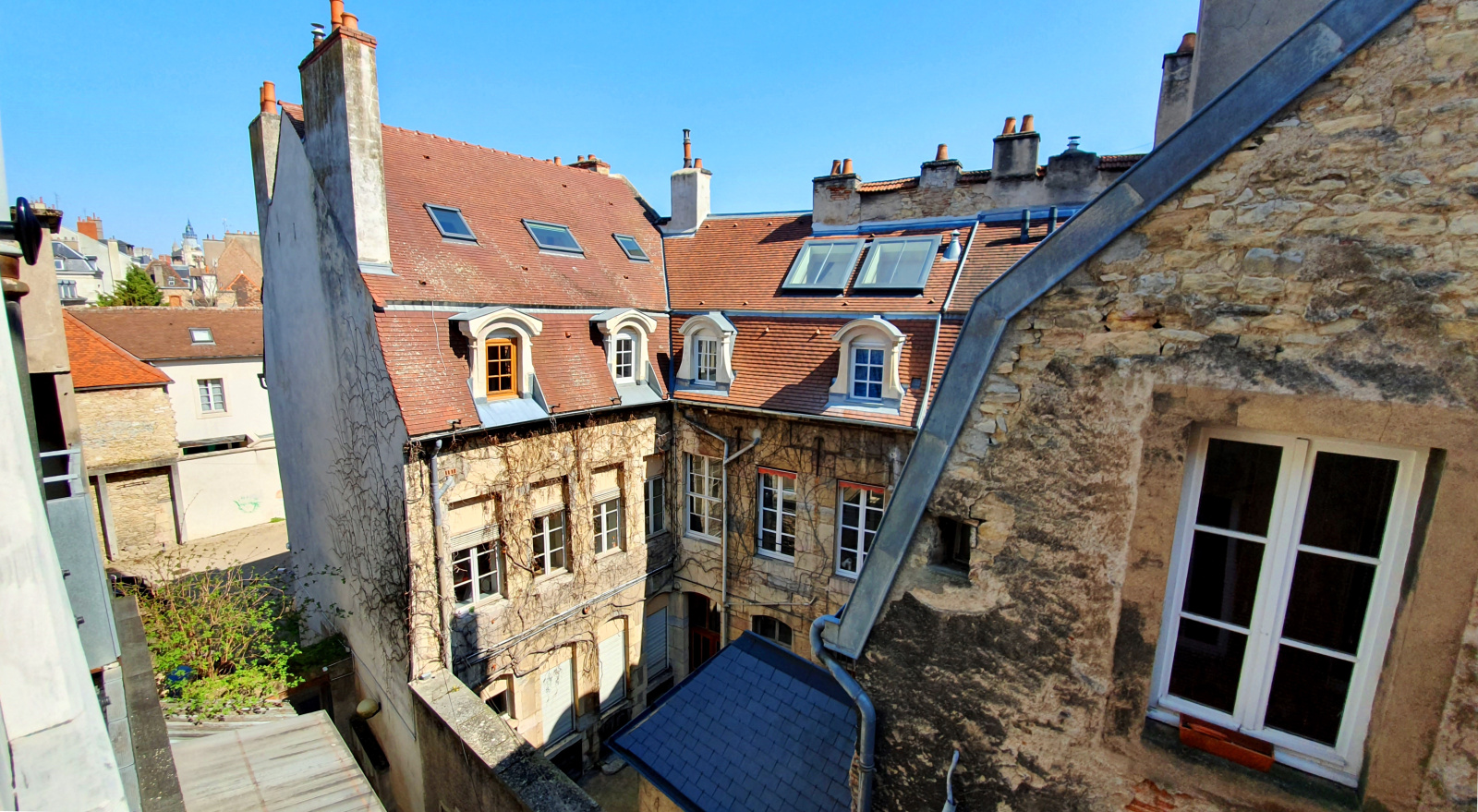 DIJON - HYPER CENTRE : Seul au 2e et dernier étage d'un bel immeuble ancien, au calme d'une cour intérieure, ce duplex de charme offre près de 130 m² de surface habitable et de jolies vues dégagées sur les toits dijonnais. Sa vaste pièce de vie dispose d'une cuisine ouverte équipée, d'une cheminée fonctionnelle et d'une triple exposition dont deux portes-fenêtres donnant sur de petits balconnets. Une chambre parentale et une salle de bains se situent au même niveau, complétées par deux chambres et un espace bureau et buanderie au niveau supérieur. Entièrement rénové il y a quelques années, il est équipé d'une chaudière individuelle gaz et dispose d'une cave voûtée ainsi que d'une place de parking en location dans une cour sécurisée située aux pieds de l'immeuble (achat d'un stationnement possible en supplément). CE : D. Bien soumis au statut de la copropriété (8 lots principaux), charges annuelles payées par le vendeur 1 560 €. Tel. : 06.81.52.83.68.