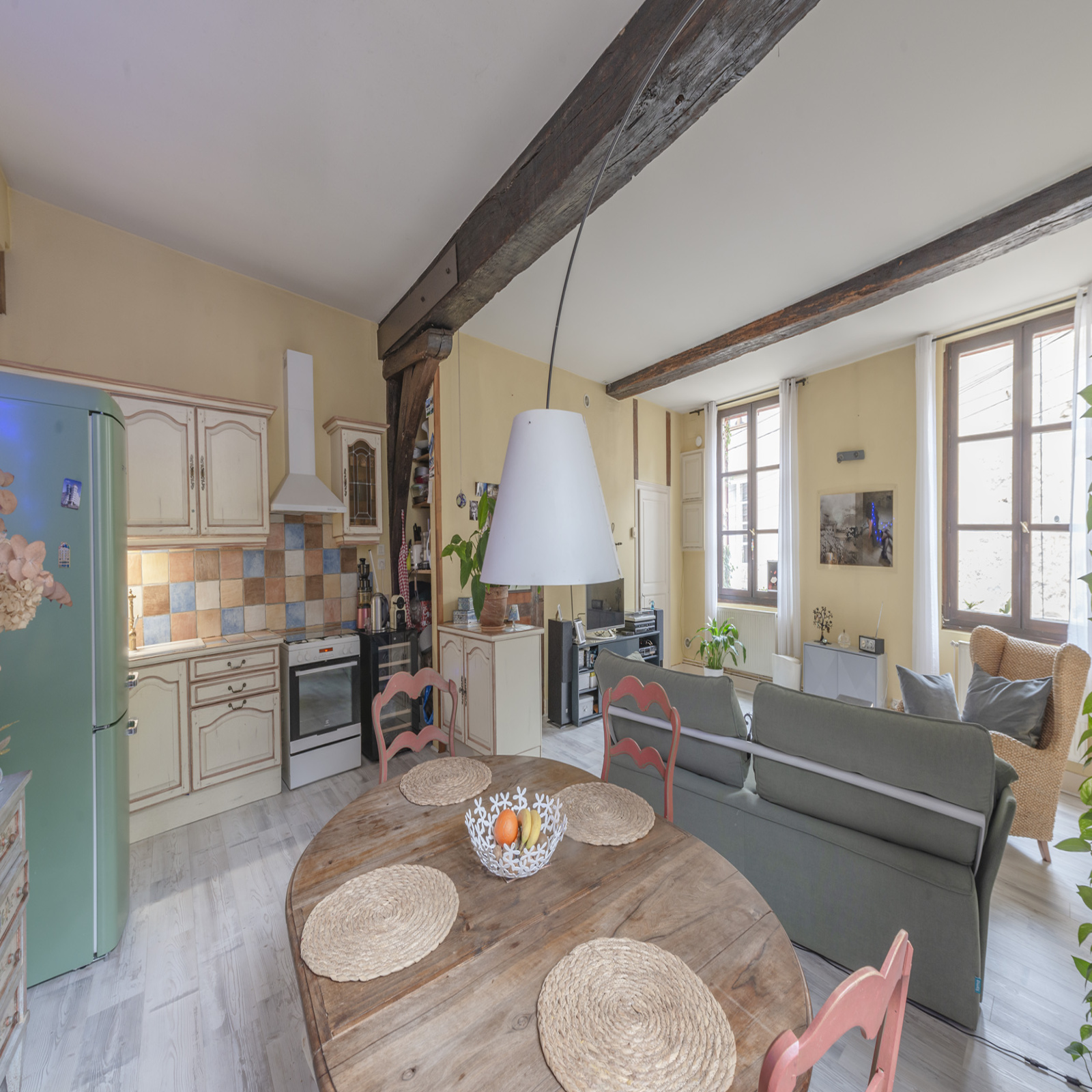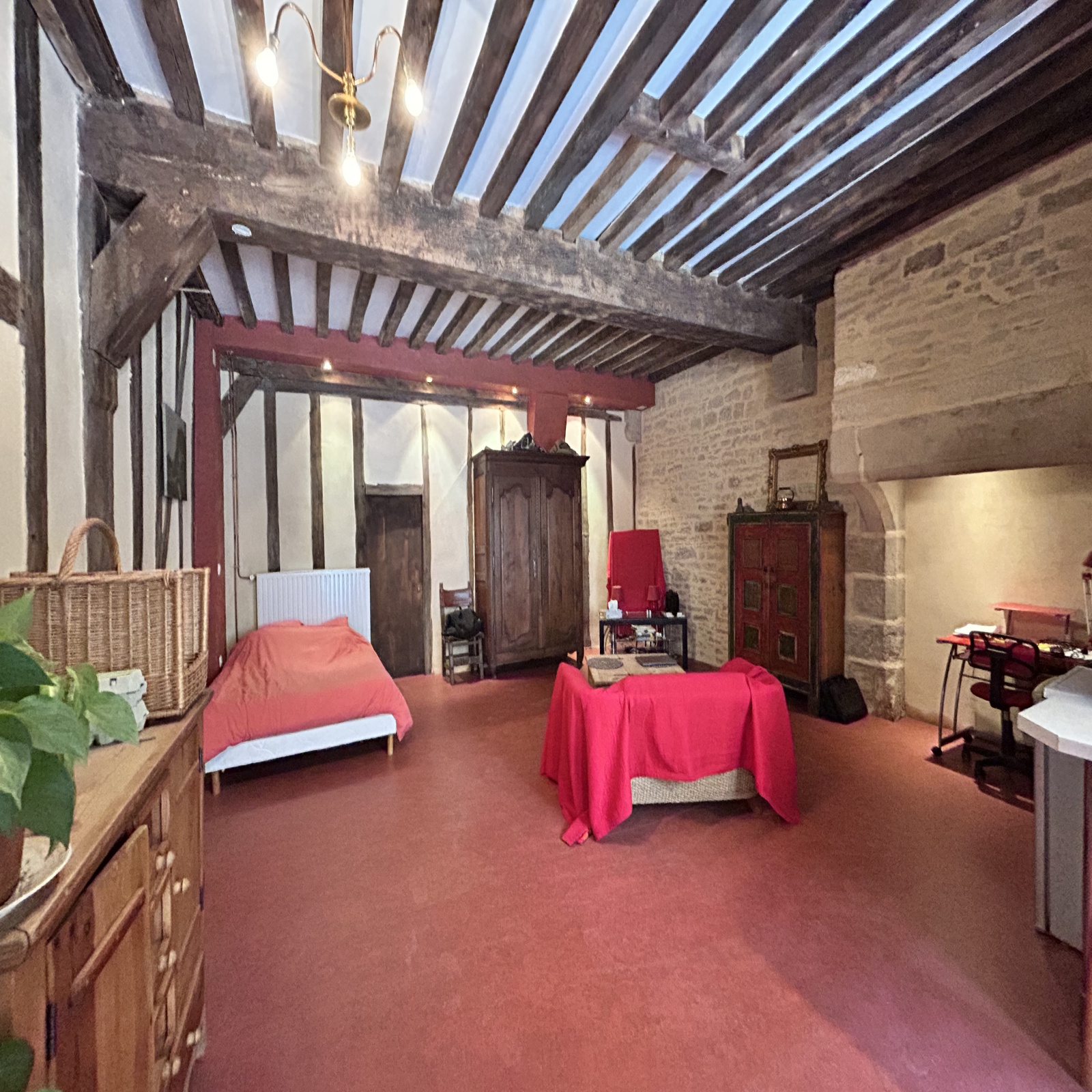 Dijon centre ville -quartier des antiquaires .Dans petite copropriété jolie Maison de ville du 15eme siecle au calme et au fond de la cour de 117m²: comprenant un duplex au 1er étage avec salon séjour avec cuisine ouverte de 40m² , un wc à l'étage :1 grande chanbre avec dressing , un bureau une salle de bain avec wc . Au rdch un magnfique studio de 40m² avec plafond à la francaise , cheminée , kitchentte , salle de douche avec wc , chauffage individuel gaz , le studio est loué en meublé à 485€ par mois jusqu'au 31 décembre 2025 Bien soumis au statut de la copropriété (16 lots principaux), charges annuelles payées par le vendeur 800 €. taxe Foncière : 1027 €. DPE 2024 : D.. Honoraires charges Vendeur. Les informations sur les risques auxquels ce bien est exposé sont disponibles sur le site Géorisques : www.georisques.gouv.fr. Contactez Mr Damidot 06.08.85 71 81