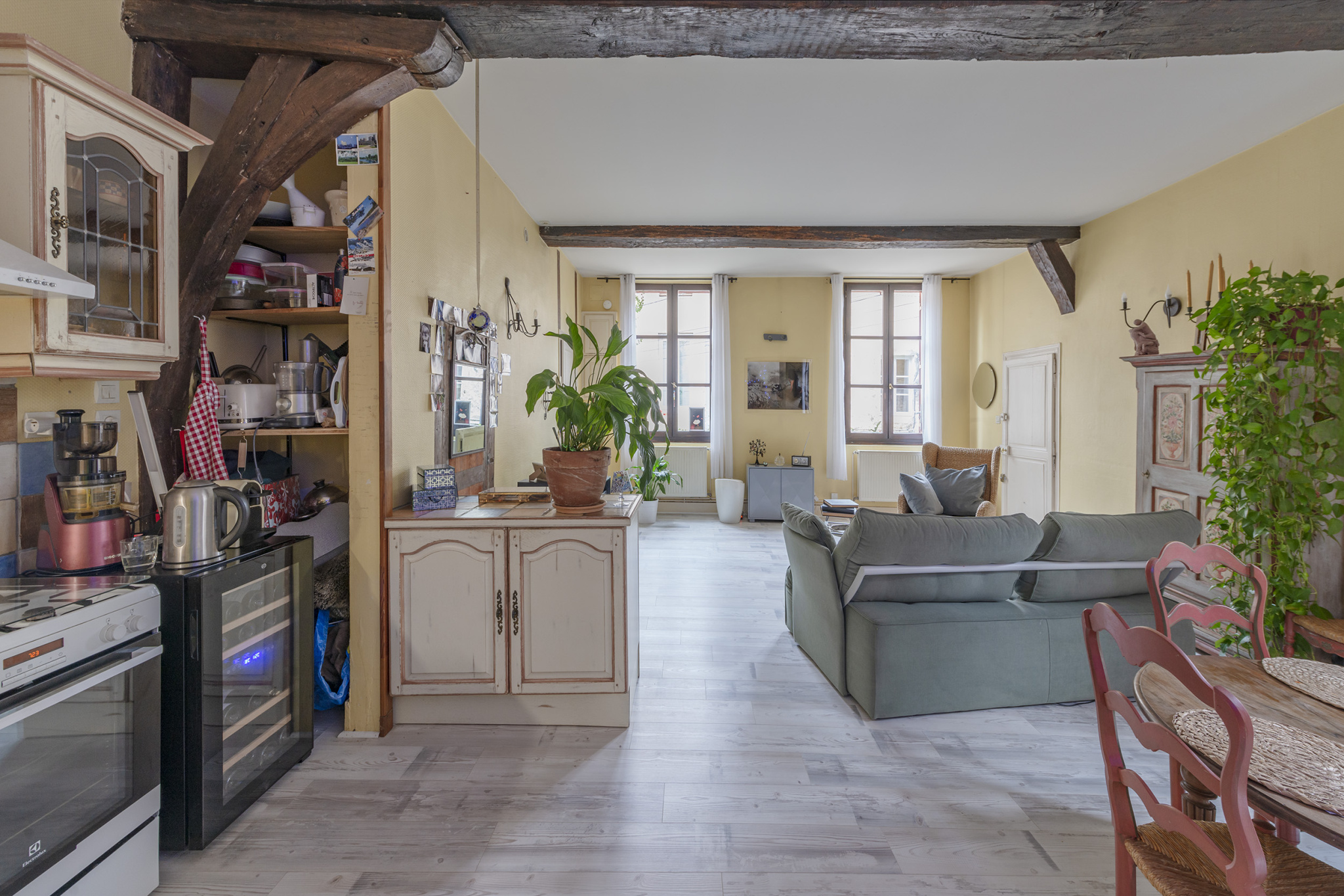 Dijon centre-ville, quartier des antiquaires. Dans une charmante maison de ville du XVe siècle, au sein d’une petite copropriété très bien entretenue, découvrez ce duplex rare de 77 m² Carrez (92 m² au sol), situé au calme absolu, au fond d’une cour intérieure, et bénéficiant d’une belle luminosité tout au long de la journée. L’entrée se fait directement dans la tour de la maison ancienne, avec son escalier dès le rez-de-chaussée, desservant le logement aux premier et deuxième étages. Au premier niveau, une spacieuse pièce de vie de 40 m² baignée de lumière, comprenant salon-séjour et cuisine ouverte, ainsi qu’un WC indépendant. À l’étage, une grande chambre avec dressing et espace bureau offre un cadre paisible et lumineux, avec une vue dégagée sur le clocher de Saint-Michel, complétée par une salle de bains avec WC. Bien soumis au statut de la copropriété (16 lots principaux), charges annuelles 800 €, ,DPE 2024 : D. Informations sur les risques disponibles sur www.georisques.gouv.fr. Contact : M. Damidot 06 08 85 71 81.