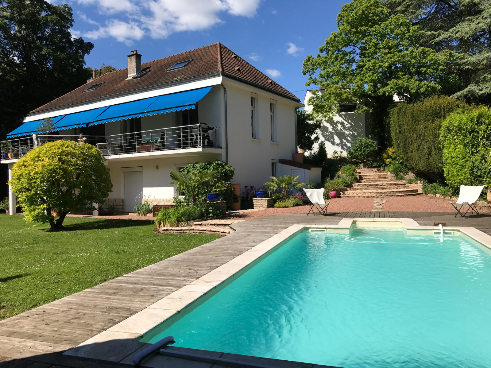 DIJON - VICTOR HUGO : 5 min du centre ville et de la gare. Dans un environnement calme et verdoyant sur 1 727 m² de terrain, trés belle villa d'architecte des années 60 entierement revisitée il y a 10 ans avec des matériaux de qualité. Comprenant au rez de chaussée : trés belle entrée desservant trés grand salon séjour de 50 m² avec cheminée centrale, grandes baies vitrées avec accés sur terrasse plein sud avec vue sur parc sans vis à vis. Cuisine indépendante aménagée équipée, trés belle suite parentale avec dressing, salle de bains avec baignoire et douche. A l'étage : mezzanine, deux chambres, salle de bains . En rez de jardin : large dégagement qui dessert : trois chambres, salon télé, bureau , salle de douche avec sauna. Lingerie, buanderie, cave, chaufferie et reserve. Grand garage double. Le tout sur un magnifique parc paysagé avec piscine. CE : D. Tel : 06.08.85.71.81.