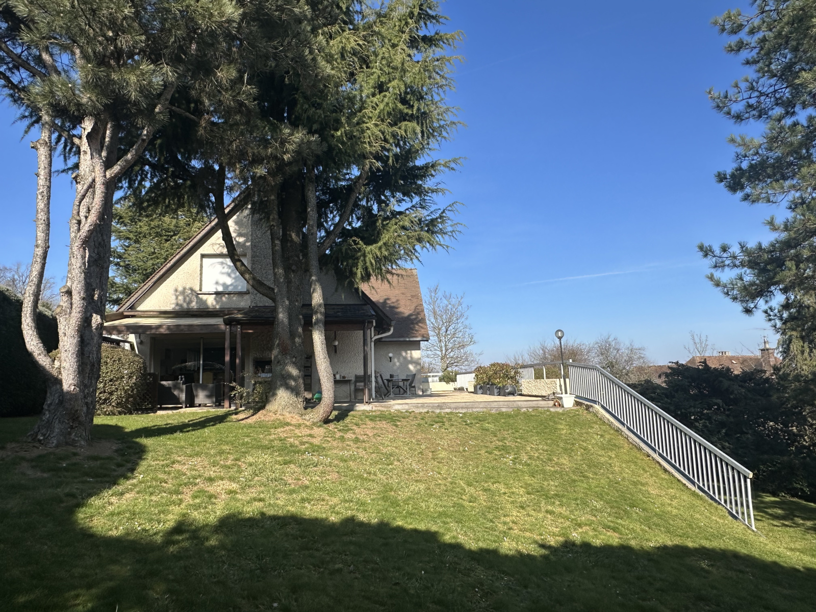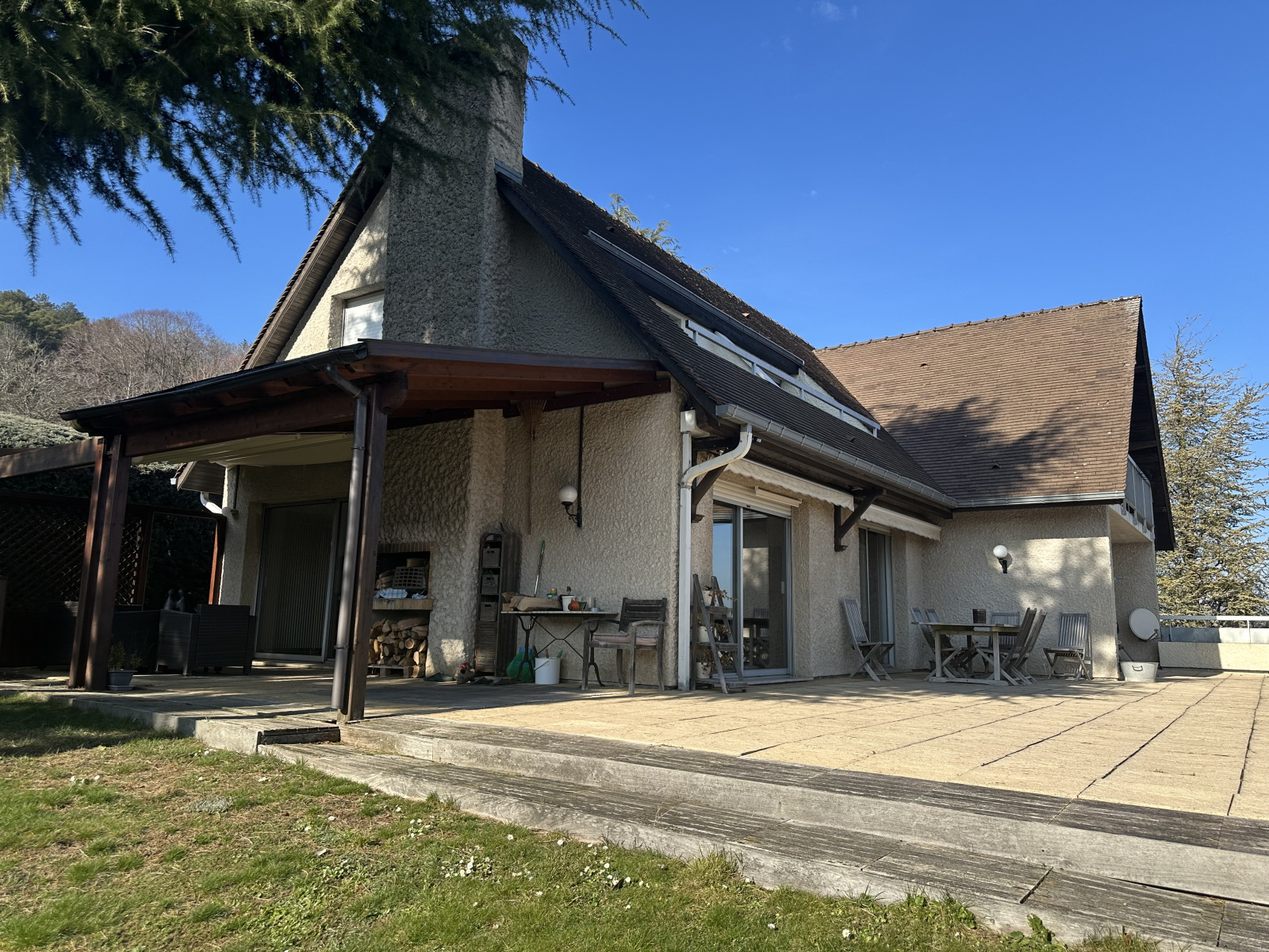 Dijon - 5min Dijon sud -Ouest ,Superbe maison d'architecte de 1978sur les hauteurs de Corcelles de 220m² habitables avec piscine interieure. Une grande terrasse avec magnifique vue,un parc de 1632 m² clos, boisé et arboré.La maison comprend au rdch: une grande entrée qui dessert salon -séjour avec cheminée sur terrasse plein sud ,une cuisine ouverte aménagée et équipée, une suite parentale avec salle de bain et dressing, un salon télévision ou bureau,un wc. A l'étage vous disposez de 3 chambres avec terrasses, une salle de bain et une salle d'eau. Au niveau -1 de la maison un sous sol complet avec salle de jeu qui dessert la piscine interieure avec baie vitrée ouvrante sur le jardin. Une salle de douche et wc , cave a vin ,buanderie avec chaufferie et grand garage triple complètent ce niveau. DPE 2025 : C.Les informations sur les risques auxquels ce bien est exposé sont disponibles sur le site Géorisques. www.georisques.gouv.fr. N'hesitez pas à contacter Mr Damidot au 06.08.85.71.81 si vous souhaitez venir découvrir cette magnifique maison familial.