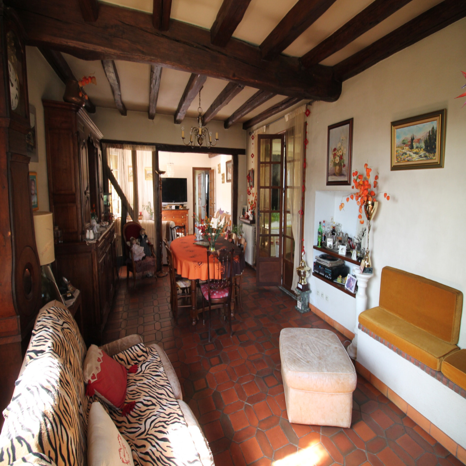 DIJON/CHENOVE: Proximité des vignes et du TRAM, pavillon individuelle de 120 m2 avec un grand salon-séjour de 40 m² avec poutre apparente donnant sur une grande terrasse de 30 m2 plein sud, cuisine séparée et équipée, 3 belles chambres dont une avec placards, salle de bains. Sous-sol complet avec une chambre et point d'eau, salle de jeux, garage 2 voitures, atelier, chaufferie (chaudière récente au gaz) et un garage extérieur. Jardin arboré et clos de 444 m2. CE en Cours.Monsieur BAILLY Vincent tel. : 06.64.43.38.17