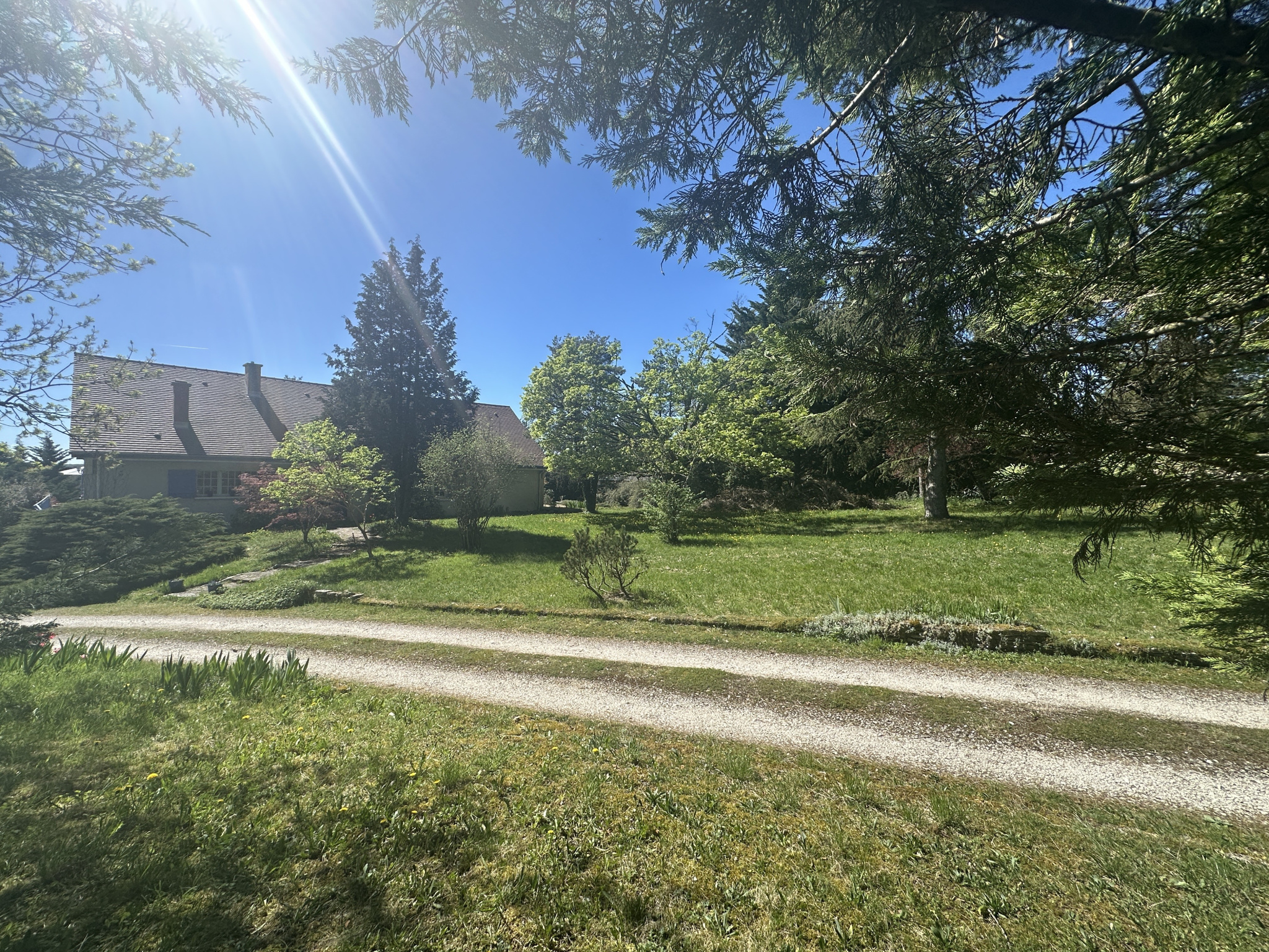 Darois à seulement 10 minutes à l’ouest de Dijon, venez découvrir cette élégante villa d’architecte des années 70 dans un environnement naturel privilégié, à proximité immédiate de la forêt, Développant des volumes généreux, cette propriété de caractère conjugue avec justesse authenticité et architecture contemporaine. Dès l’entrée, les espaces impressionnent par leur volume et leur luminosité. Le rez-de-chaussée s’organise autour d’un remarquable salon-séjour d’environ 70 m², sublimé par une cheminée et de belles poutres apparentes, offrant un cadre de vie chaleureux et raffiné. Une cuisine indépendante, trois chambres, une salles de bains et deux WC