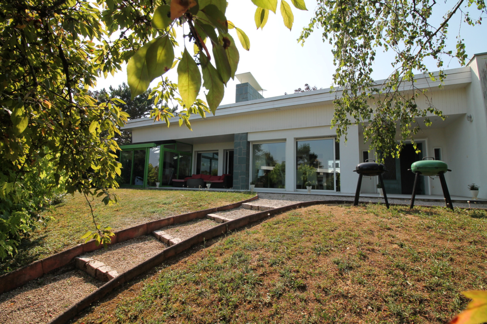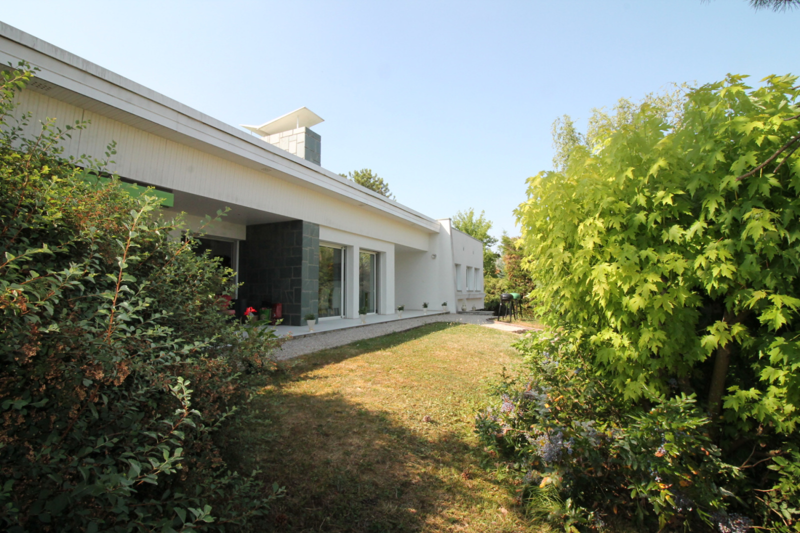 FONTAINE-LES-DIJON : Maison d'architecte des années 70 en très bon état avec 180 m² de plain-pied comprenant vaste entrée, salle à manger avec cheminée, séjour avec grande baie vitrée aluminium, accès sur terrasse et jardin d'hiver, cuisine indépendante, dégagement, 4 chambres en parquet avec de nombreux placards, petite salle de douche attenante à 1 chambre ,grande salle de bain récente avec baignoire, douche et double vasques. Sous-sol complet semi enterré comprenant sur 70 m² une grande salle de jeux, 2 chambres et une salle de douche. Dans l'autre partie, grand garage double, cellier, cave, buanderie et chaufferie. Le tout sur 1 150 m² de terrain clos, arboré et piscinable. CE : D. 06.08.85.71.81. 599 000 €